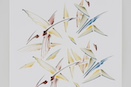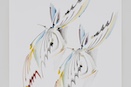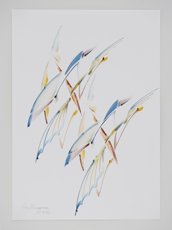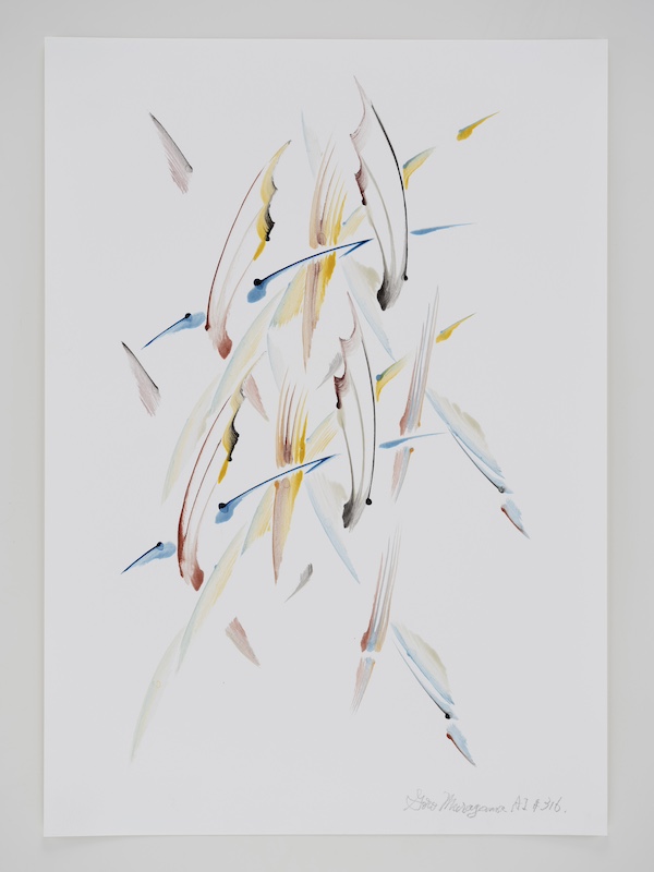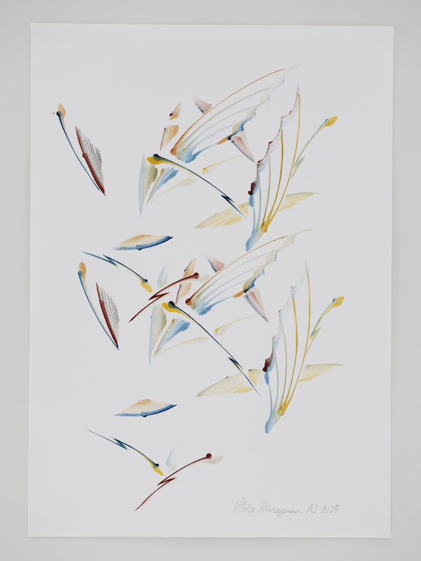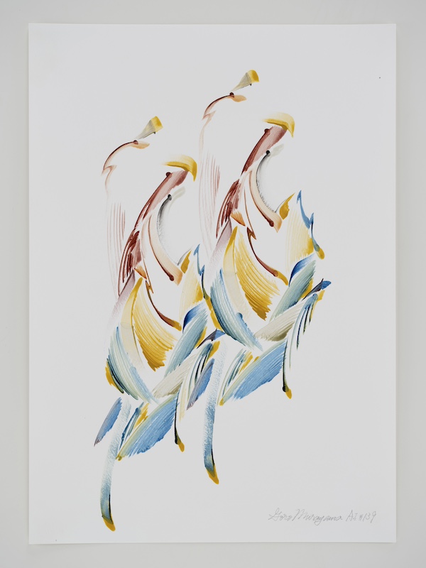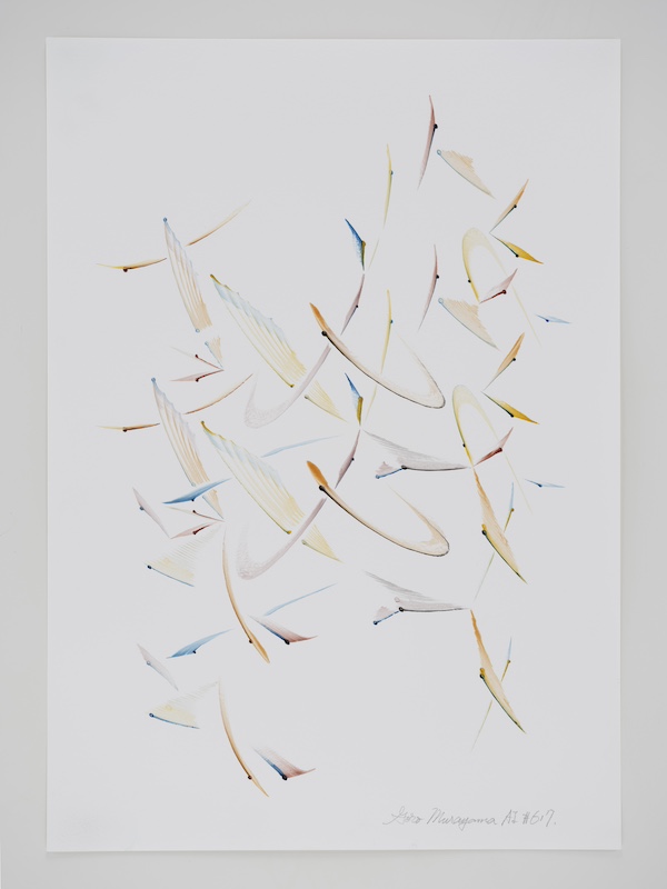 and “not to erase/paint over a line once drawn,” and they are mainly drawn by the artist's improvisational figurative thinking.
